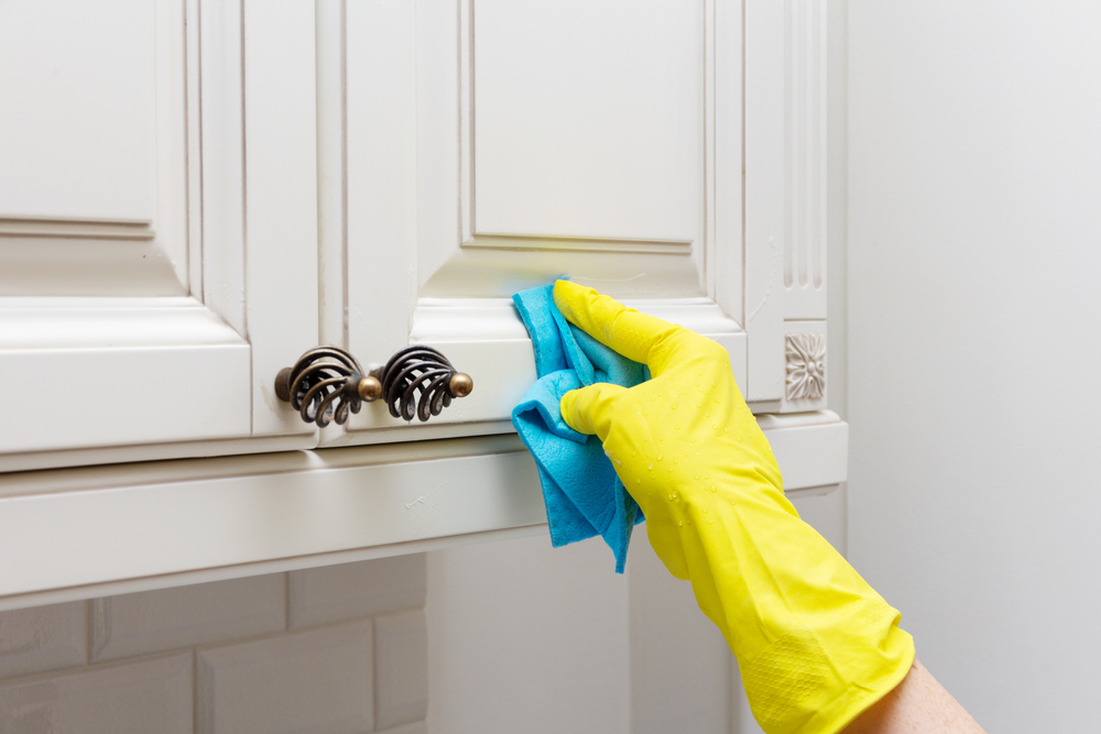 Inside cabinets & drawers – wiped, sanitized & ready for belongings